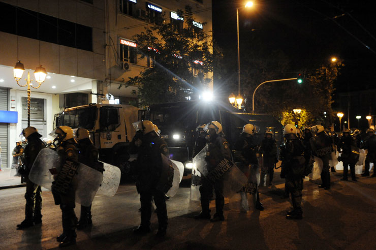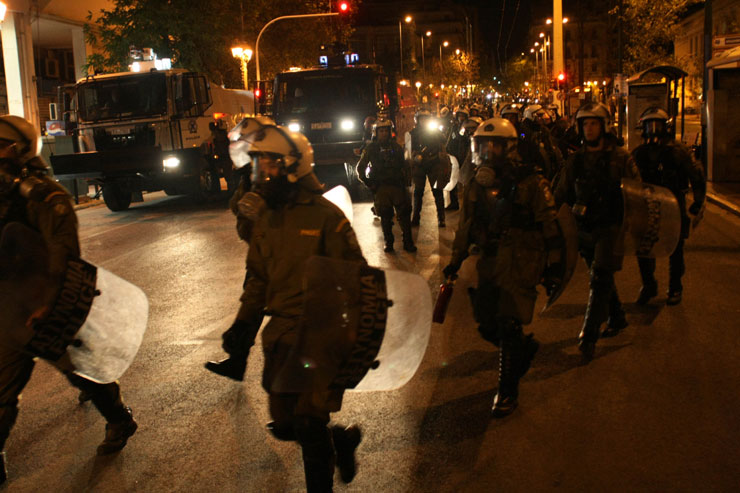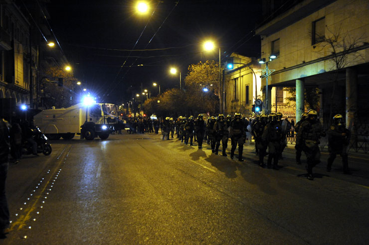 Την ίδια στιγμή, διμοιρίες των ΜΑΤ κατευθύνθηκαν προς τους δρόμους περιμετρικά της πλατείας Εξαρχείων και του Πολυτεχνείου. Η παρουσία της αστυνομίας στο κέντρο της Αθήνας ήταν αυξημένη. Η εντολή προς τις δυνάμεις ασφαλείας ήταν σαφής: «Μην επιτρέψετε την είσοδο ατόμων μέσα στο Πολυτεχνείο», το οποίο τελεί υπό κατάληψη.