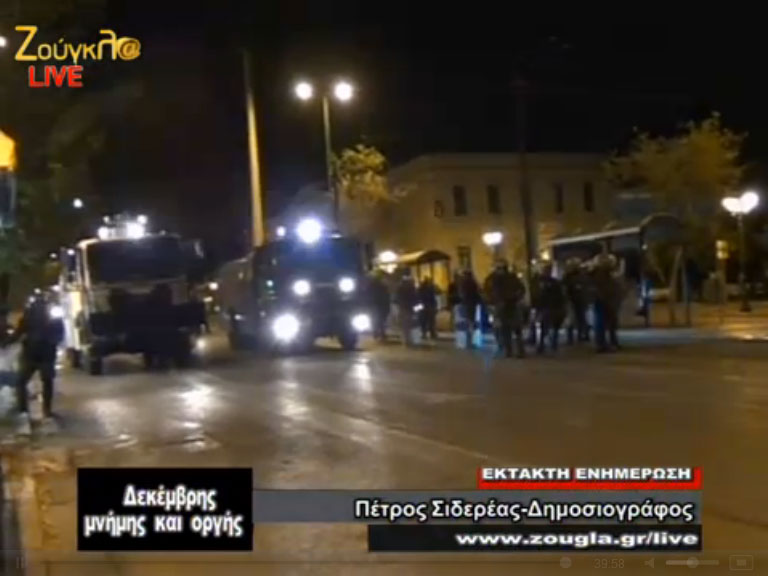 Αστυνομικοί προσπαθούν να εισβάλουν σε πολυκατοικία στα Εξάρχεια, Πρώτη καταχώρηση: Κυριακή, 7 Δεκεμβρίου 2014, 00:25