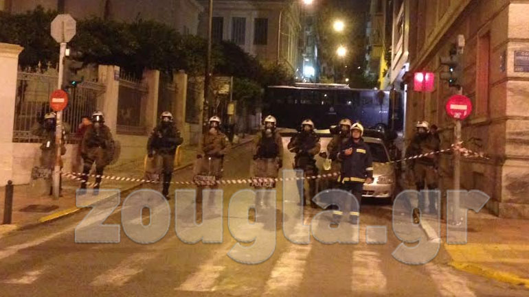 Ισχυρές δυνάμεις των ΜΑΤ βρέθηκαν επί τόπου και δεν σταμάτησαν να κάνουν χρήση δακρυγόνων, απωθώντας τους διαδηλωτές, οι οποίοι έστησαν πρόχειρα οδοφράγματα χρησιμοποιώντας σίδερα, ξύλα, καρέκλες, πέτρες και κάδους απορριμμάτων. Ένα από αυτά στήθηκε στη Στουρνάρη δίπλα από την είσοδο του Πολυτεχνείου. Αυτόπτης μάρτυρας ανέφερε στο zougla.gr ότι αρκετά από τα αντικείμενα που χρησιμοποιήθηκαν για την κατασκευή του συγκεκριμένου οδοφράγματος, μεταφέρθηκαν από διαδηλωτές μέσα από τους χώρους του Πολυτεχνείου.