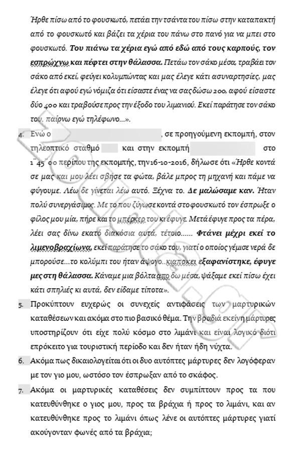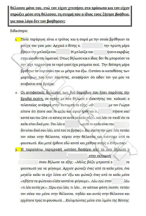 Η ίδια εκτιμά ότι ο γιος της δεν βγήκε ποτέ από τη θάλασσα.