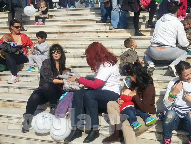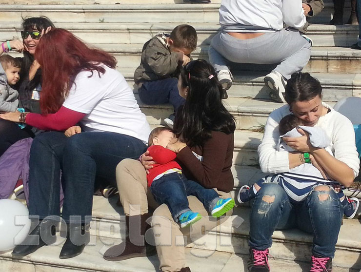 Στο Ζάππειο και σε 50 περιοχές της Ελλάδας διεξάγεται από το πρωί της Κυριακής ο 5ος πανελλαδικός ταυτόχρονος δημόσιος μητρικός θηλασμός από το Πανελλήνιο Δίκτυο Εθελοντικών Ομάδων Υποστήριξης Μητρικού Θηλασμού και Μητρότητας, στο πλαίσιο του εορτασμού της Παγκόσμιας Εβδομάδας Θηλασμού.
