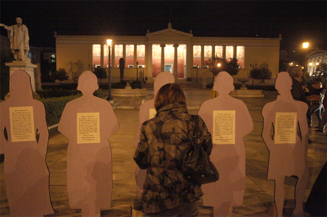 Στο πλαίσιο των εκδηλώσεων η Γενική Γραμματεία Ισότητας των Φύλων, με την υποστήριξη του Διεθνούς Φεστιβάλ Κινηματογράφου της Αθήνας, διοργάνωσε συγκέντρωση στα Προπύλαια.
