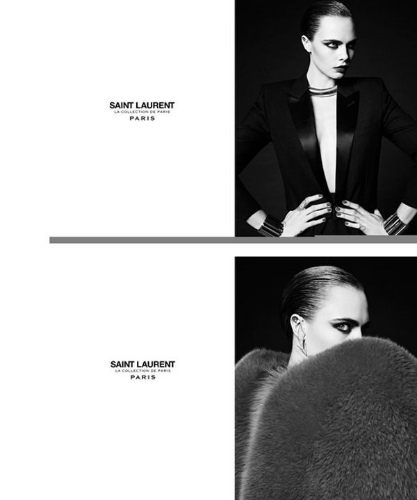 Η Cara Delevingne, αν και αποφάσισε να αφιερωθεί στην υποκριτική, επέστρεψε για λίγο στο μόντελινγκ για χάρη του οίκου Saint Laurent.