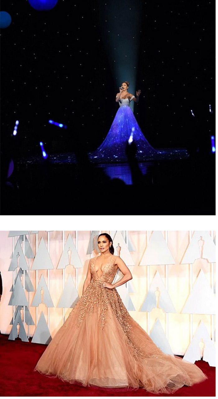 «Feel the Light» τραγούδησε η Jennifer Lopez το βράδυ της Πέμπτης στη σκηνή του American Idol και μάγεψε τα πλήθη τόσο με τη φωνή της όσο και με το εντυπωσιακό φόρεμά της φτιαγμένο μόνο από εκείνη από την Mariel Haenn. Το φόρεμα λαμπύριζε με τα φώτα και σε συνδυασμό με την επτά μέτρα ουρά του, είχε μετατρέψει την JLo σε παραμυθένια πριγκίπισσα.