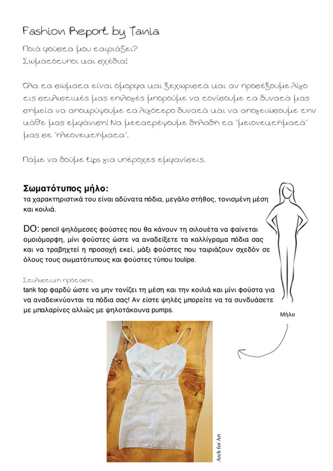 Όλα τα σώματα είναι όμορφα και ξεχωριστά και αν προσέξουμε λίγο τις στυλιστικές μας επιλογές μπορούμε να τονίσουμε τα δυνατά μας σημεία να αποκρύψουμε τα λιγότερα δυνατά...
