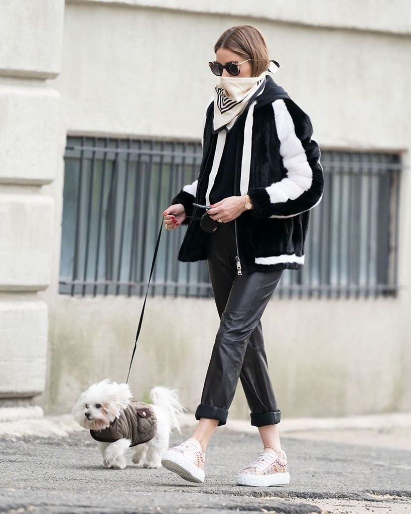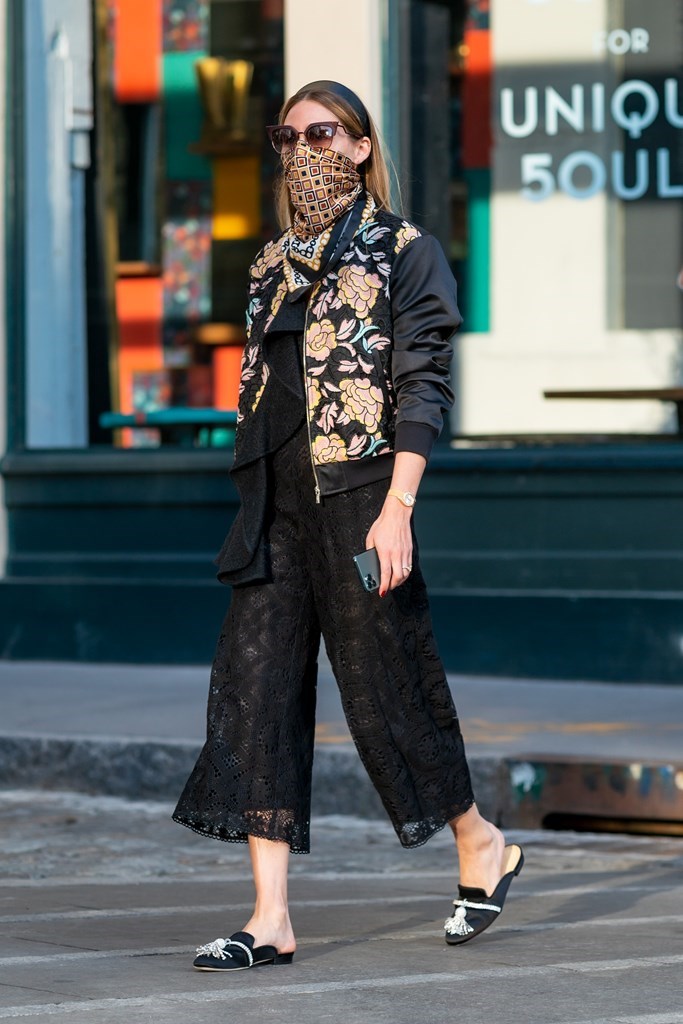 Είναι γνωστό πως η Olivia Palermo αγαπάει τα μαντήλια και δεν μας προκαλεί έκπληξη που δεν τα αποχωρίζεται ούτε για να φορέσει μάσκα. Κάθε φορά επιλέγει μεταξωτά μαντήλια, με prints αλλά και αποχρώσεις που ταιριάζουν με το εκάστοτε outfit.