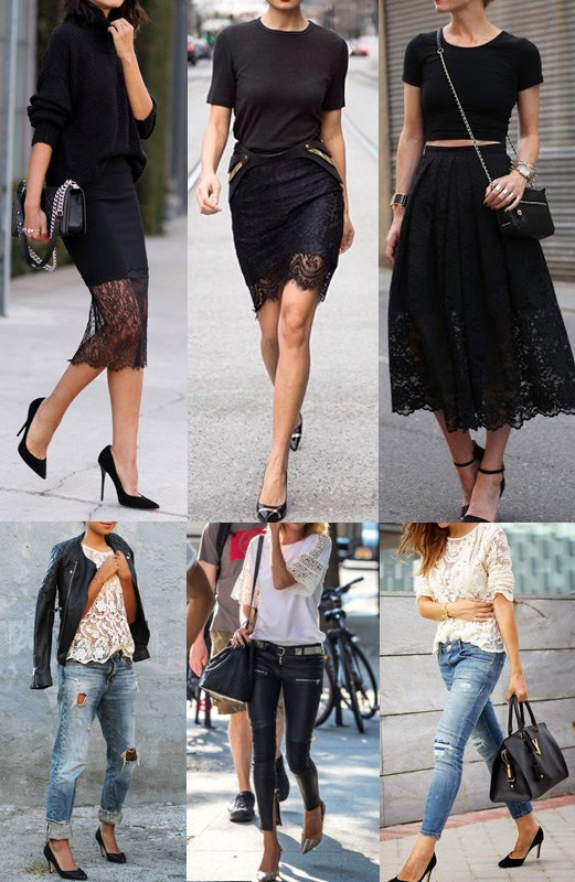 1. Η σέξι δαντέλα δίνει πάντα super chic αποτέλεσμα. Δοκίμασε την σε μπλούζα ή φούστα και θα δεις πως έχω δίκιο. Συνδύασέ τη με τζιν, δερμάτινο παντελόνι, crop top ή oversized πουλόβερ ανάλογα με την περίσταση και αμέσως έχεις δημιουργήσει το τέλειο σύνολο για βραδινή έξοδο.