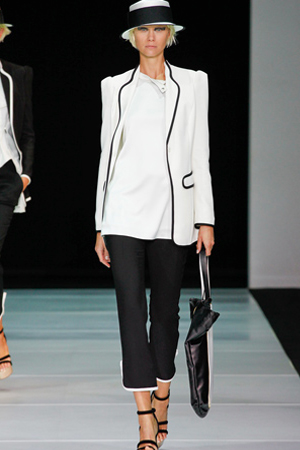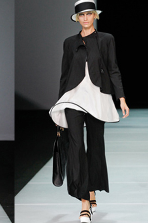 Ο απόλυτος συνδυασμός λευκό-μαύρο, μοντέλα με πλατινέ περούκες σε κοντό καρέ, ανάλαφρες, ξεκάθαρες γραμμές που παρέπεμπαν σε εποχή, έδιναν στα ρούχα την έμφαση που τους άξιζε!