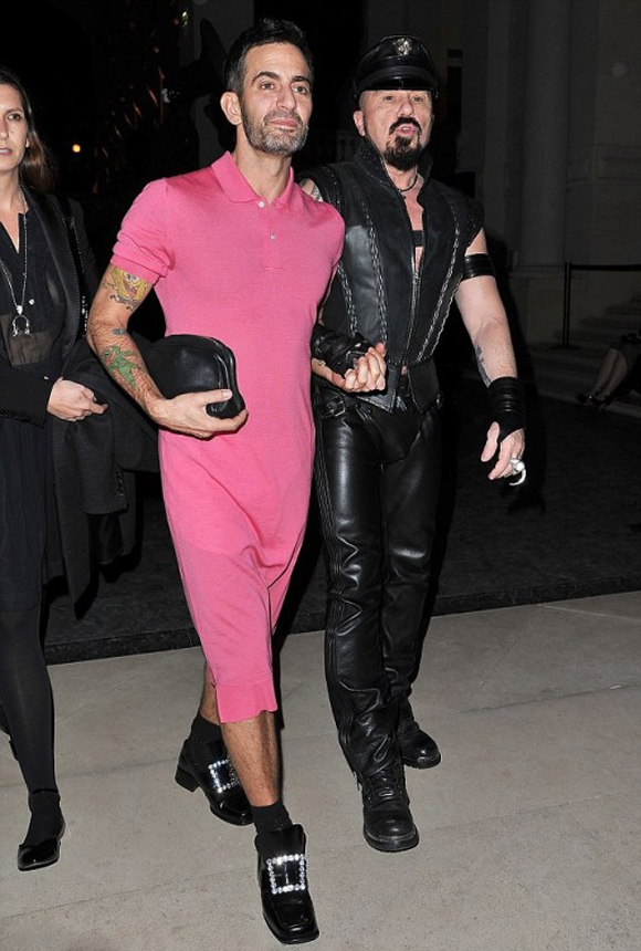 Ο Marc συνοδευόταν από τον αρχιτέκτονα και σχεδιαστή Peter Marino, που έχει εμφανιστεί και πάλι με το συγκεκριμένο look, που παραπέμπει σε σαδομαζοχιστή μηχανόβιο.