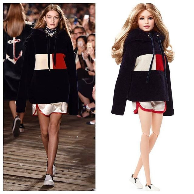Φυσικά, το outfit της κούκλας περιλαμβάνει ένα κλασσικό Hilfiger look, με το φούτερ με τη σημαία, σορτς και λευκά sneakers – ακριβώς το look δηλαδή, που είχε και η Gigi στην παρουσίαση της πρώτης Tommy x Gigi συλλογής για τη σεζόν Φθινόπωρο/Χειμώνας 2016.