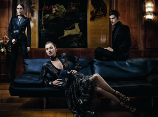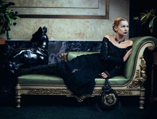 Ένα role-playing μεταξύ της αλάνθαστης θηλυκότητας της Kate Moss, της διαχρονικής ομορφιάς της Karmen Pedaru και της ελκυστικής εμφάνισης του Sean O’Pry διαδραματίζεται με φόντο ένα γεωμετρικό παιχνίδι καθρεπτών και υφασμάτων που συνθέτουν το περιβάλλον ενός παραμυθένιου παλατιού.