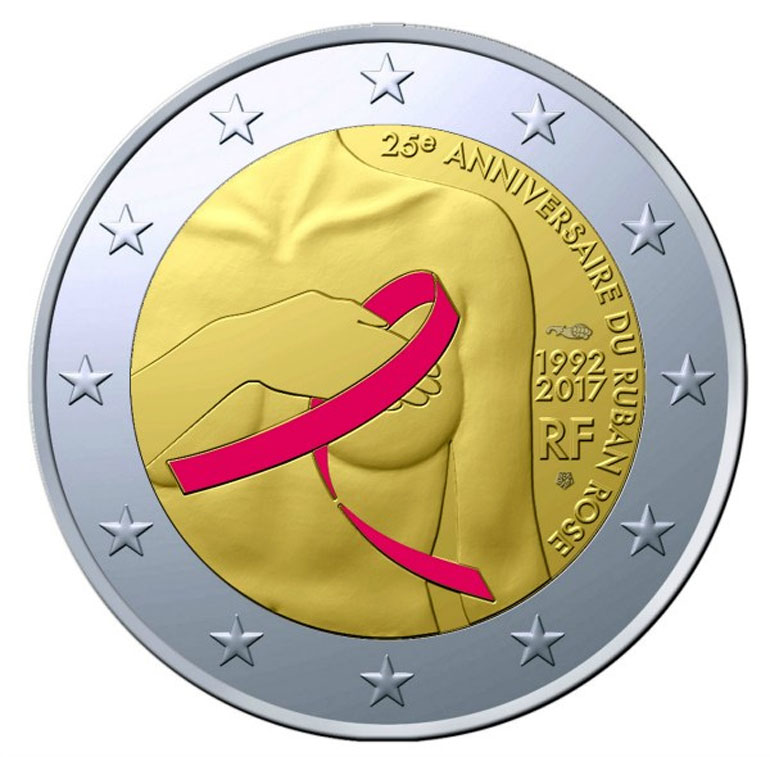 Προς τιμήν της 25η Επετείου της Εκστρατείας Ενημέρωσης για τον καρκίνο του Μαστού των Estée Lauder Companies’ το Γαλλικό Μη Κερδοσκοπικό Ίδρυμα, Le Cancer du Sein, Parlons-en!, συνεργάστηκε με το French Monnaie de Paris, για να δημιουργήσουν ένα περιορισμένης έκδοσης αναμνηστικό κέρμα ευρώ.