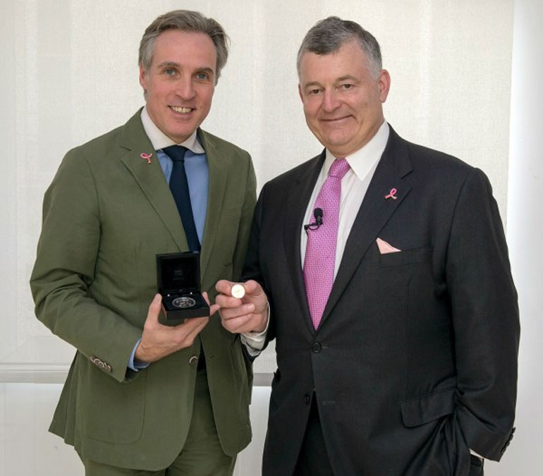 «Όταν η μητέρα μου Evelyn H. Lauder δημιούργησε την Εκστρατεία Ενημέρωσης για τον Καρκίνο του μαστού, πίστευε σε δύο πολύ ισχυρές αλλά απλές αρχές – ότι η γνώση είναι δύναμη και ότι η εκπλήρωση της αποστολής της Εκστρατείας δεν θα μπορούσε να συμβεί από ένα άτομο μόνο. Το πάθος, η φροντίδα και η ακούραστη αφοσίωση των υπαλλήλων και των συνεργατών μας σε όλο των κόσμο– συμπεριλαμβανομένου του Le Cancer du Sein Parlons-en! , συνεργάτη μας στην Εκστρατεία στη Γαλλία – είναι κάτι που μου δίνει μεγάλη ενέργεια και συγκίνηση, και η συλλογική αυτή δουλειά μας φέρνει όλο και πιο κοντά κάθε μέρα σε μια παγκόσμια θεραπεία. Είναι τιμή να αναγνωριστεί η 25η επέτειος της Εκστρατείας μας με αυτό το αναμνηστικό κέρμα» είπε ο William P. Lauder, The Estée Lauder Companies, Executive Chairman.