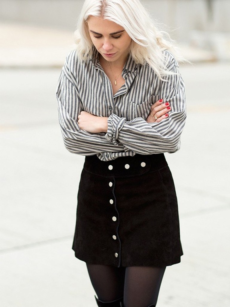 Οι φούστες σε Α γραμμή με κουμπιά μπροστά σε τζιν ή σουέντ υφάσματα είναι λοιπόν το απόλυτο trend της σεζόν και κολακεύουν πολύ τη μεσογειακή σιλουέτα.