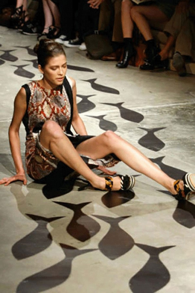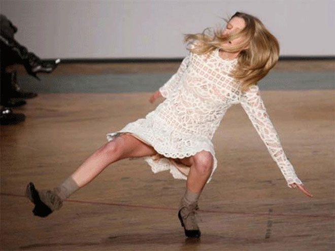 Τα ατυχήματα σε μια επίδειξη μόδας είναι αναπόφευκτα, είτε γιατί τα φορέματα είναι μακριά και άβολα πολλές φορές ή απλά γιατί τα τακούνια είναι συνήθως πολύ ψηλά για να αναδεικνύουν καλύτερα τα ρούχα.