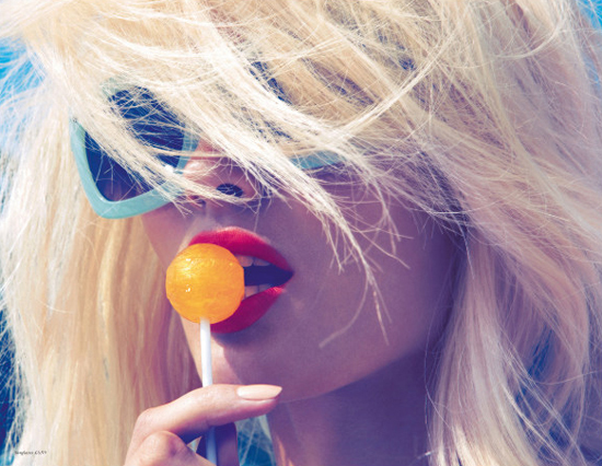 Η Edita Vilkeviciute με ένα γλειφιτζούρι φωτογραφίζεται για το H&M Magazine από την Camilla Akrans.