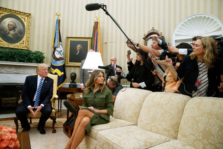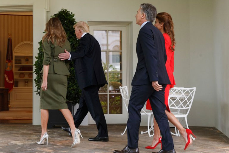 Στη συνάντηση του συζύγου της Ντόναλντ Τραμπ με τον πρόεδρο της Αργεντινής Μαουρίσιο Μάκρι στον Λευκό Οίκο έδωσε το παρών η Μελάνια Τραμπ που για άλλη μια φορά κατάφερε να μαγνητίσει τα βλέμματα με το στιλ της.
