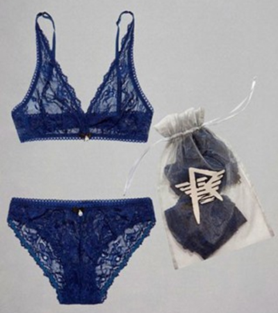 Με το logo της «R» να καλύπτει το σήμα κατατεθέν του οίκου, σχεδίασε κολλητά τζιν, biker σακάκια, trendy T-shirts και δαντελένια εσώρουχα σε μπλε και περλέ.