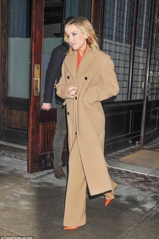 Όπως μπορείτε να δείτε η Kate Hudson επέλεξε ένα ψηλόμεσο φαρδύ παντελόνι σε καμηλό χρώμα και μακρύ παλτό του ίδιου χρώματος, που φέτος θεωρείται το νούμερο ένα χρώμα στη μόδα. Από μέσα επέλεξε ένα πορτοκαλί μπλουζάκι το οποίο συνδύασε με το ίδιο χρώμα γόβες. Το καμηλό με το πορτοκαλί είναι ο καλύτερος χρωματικά συνδυασμός και η Kate Hudson όπως φαίνεται το γνωρίζει καλά! Τόλμησέ το κι εσύ και κλέψε τα βλέμματα…