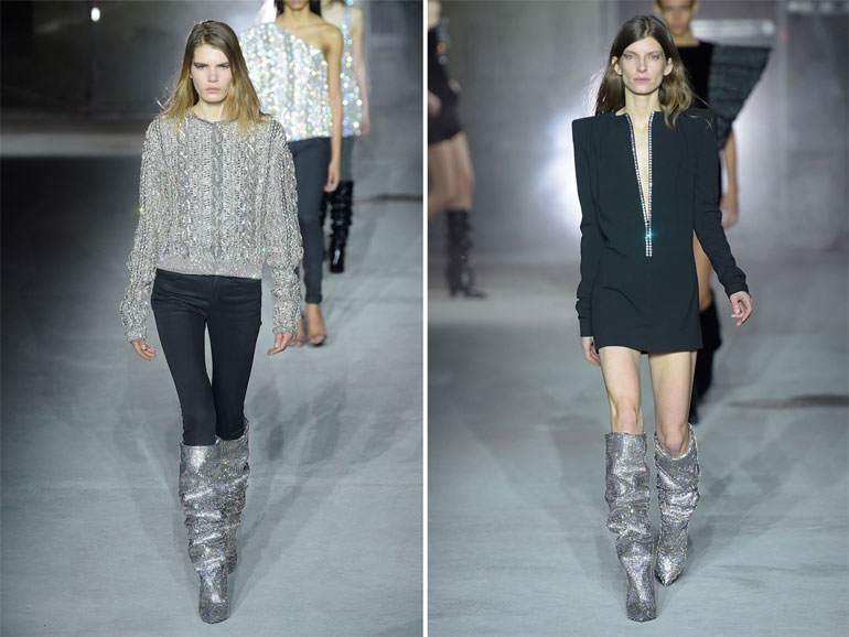 Ένα από τα κομμάτια που ξεχώρισε από την Εβδομάδα Μόδας του Παρισιού για τη σεζόν Φθινόπωρο/Χειμώνας 2017-2018 ήταν κατά κοινή ομολογία οι λαμπερές, sparkling μπότες του οίκου Saint Laurent.