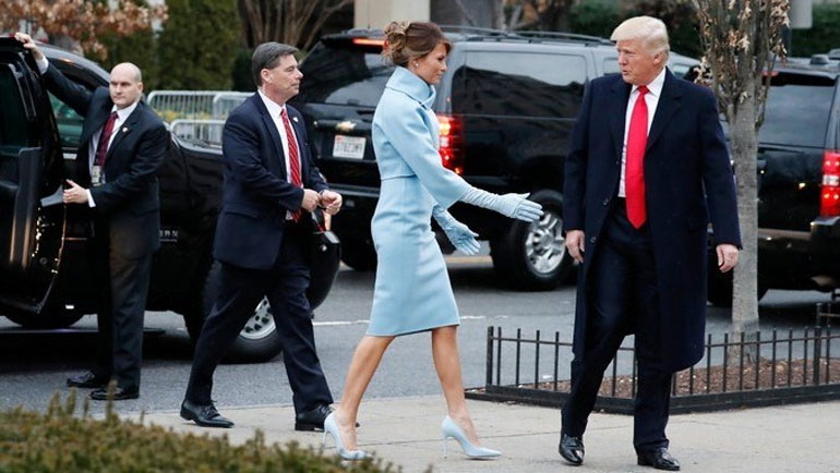 Μετά τον πόλεμο που είχε δημιουργηθεί ανάμεσα στους σχεδιαστές για το ποιος θα ντύσει τελικά την νέα Πρώτη Κύρια των ΗΠΑ τελικά η Melania Trump εμφανίστηκε στην τελετή ορκωμοσίας του συζύγου της με δημιουργία Ralph Lauren.