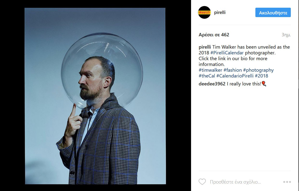Έπειτα από μία άκρως επιτυχημένη συνεργασία με τον Peter Lindbergh για το 2017, το ημερολόγιο Pirelli μόλις ανακοίνωσε τη νέα του συνεργασία, που θα αφήσει για ακόμη μία φορά τον κόσμο της μόδας άφωνο.