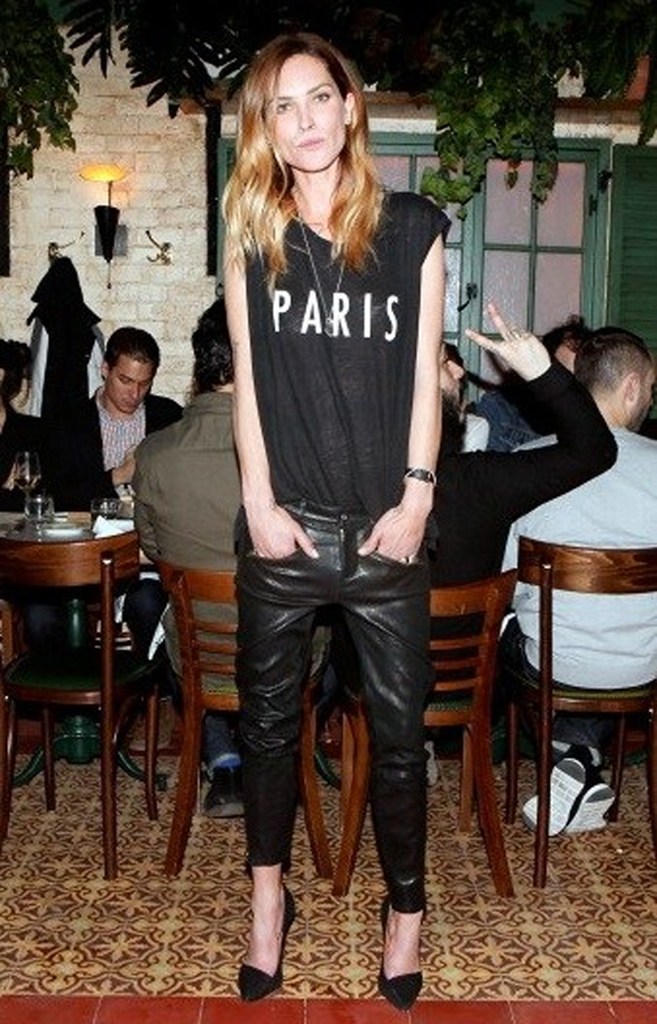 1. Με δερμάτινο παντελόνι και μαύρα Pumps