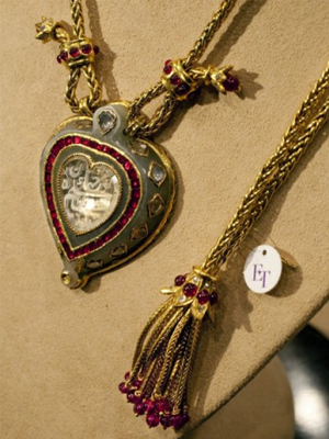 Όμως, ο Μπάρτον δεν σταμάτησε εκεί. Το 1972 απέκτησε το περίφημο μενταγιόν με διαμάντια Ταζ Μαχάλ, το οποίο και της χάρισε στα 40ά γενέθλιά της. «Θα προτιμούσα να της αγόραζα το ίδιο το Ταζ Μαχάλ, αλλά η μεταφορά θα κόστιζε πολύ» δήλωσε τότε ο Μπάρτον, αφήνοντας σύξυλους τους πάντες. Το διαμάντι σε σχήμα καρδιάς σχετίζεται με τον θρύλο του σουλτάνου Σαχ Τζαχάν που έχτισε τον Ταζ Μαχάλ στη μνήμη της συζύγου του, που πέθανε στη γέννα. Πάνω στο μενταγιόν αναγράφεται στα Περσικά: «Για την αγαπημένη μου Μαχάλ». Ο Cartier το έδεσε με χρυσό, διαμάντια και ρουμπίνια, αντικαθιστώντας το αυθεντικό μεταξωτό του κορδόνι. Η τιμή του φθάνει τα 500.000 δολάρια.