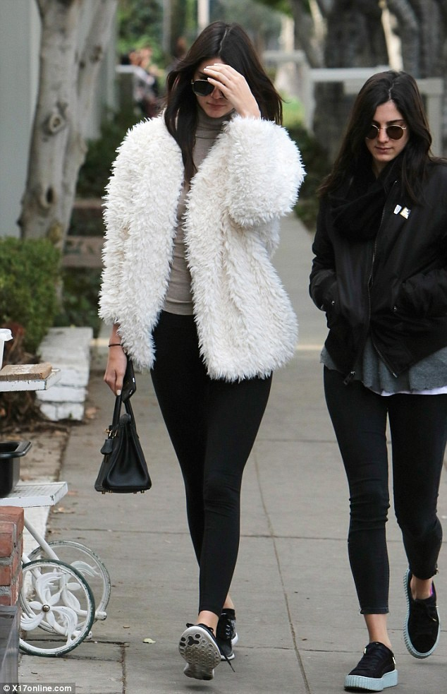 Το μοντέλο εντοπίστηκε απ’ τους παπαράτσι κατά τη διάρκεια βόλτα της, κρατώντας έναν καφέ στο χέρι και εντελώς αμακιγιάριστη, προσπαθώντας να κρύψει το πρόσωπό της απ’ τον φακό. Παρά τη δυσφορία της με τους φωτογράφους για άλλη μια φορά, το 21χρονο μοντέλο έκανε μια στιλάτη πρωινή εμφάνιση. Για την πρωινή της έξοδο επέλεξε μαύρο κολάν, αθλητικά, μπεζ ζιβάγκο μπλουζάκι και λευκή γούνα. Το look ολοκλήρωσε με ένα ζευγάρι aviators γυαλιά ηλίου και μαύρη δερμάτινη τσάντα χειρός.
