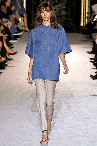 Πώς μπορείτε να κάνετε τη φούστα που σταματά κάτω από το γόνατο να μη δείχνει… μαμαδίστικη; Μια τέτοια απορία μόνο η Stella McCartney θα μπορούσε να απαντήσει και το έκανε με την καλοκαιρινή κολεξιόν της, κατεβάζοντας τη μέση λίγα εκατοστά και ξαναφέρνοντας στην επικαιρότητα τα φορέματα και τις φούστες από τζιν.