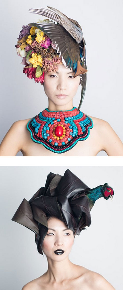 Δημιουργός είναι ο Ιάπωνας Hanayuishi Takaya, τα έργα του οποίου έρχονται να συμπληρώσουν την κολεξιόν του με τα «avant-garde καπέλα». Μπορεί να σας φαντάζει αδιανόητο να φορεθούν στην πραγματική ζωή, όμως πολλές είναι οι τολμηρές νύφες που έχουν επιλέξει τα δημιουργήματα του Takaya για να κοσμήσουν το κεφάλι τους στην σημαντικότερη μέρα της ζωής τους. Χρησιμοποιούνται επίσης σε θεατρικές παραστάσεις. Μερικά από τα κομψοτεχνήματα μάλιστα, είναι σχεδιασμένα αποκλειστικά για άνδρες.