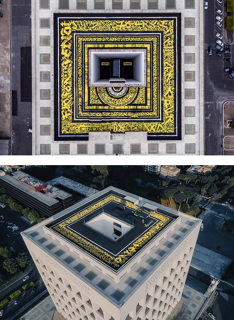 Το «τετράγωνο Κολοσσαίο» είναι στη Ρώμη και, τα τελευταία δύο χρόνια, στεγάζει τον οίκο Fendi. Ένα μνημειακών διαστάσεων γκράφιτι καλλιτέχνημα εμφανίστηκε εδώ και λίγες μέρες στην οροφή του.