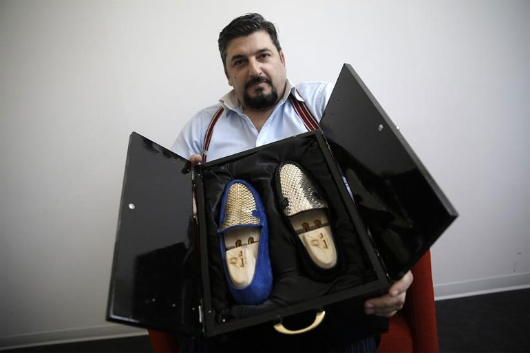 Ο υποδηματοποιός Antonio Vietri έβαλε ένα τρελούτσικο στοίχημα: να πωλήσει χειροποίητα παπούτσια πλεγμένα με χρυσάφι 24 καρατίων, απευθυνόμενος κυρίως σε πελατεία από τις χώρες του Κόλπου.