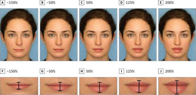 Στη συνέχεια, οι συμμετέχοντες είδαν φωτογραφίες στις οποίες το πάνω και το κάτω μέρος των χειλιών τους είχαν επεξεργαστεί ψηφιακά, για να υπολογίσουν την τέλεια αναλογία…