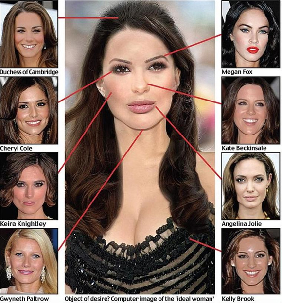 Έτσι με τα μαλλιά της Δούκισσας του Κέμπριτζ, τα σοκολατί μάτια της τραγουδίστριας Cheryl Cole, τη μύτη της ηθοποιού Kate Beckinsale, τα μάγουλα της επίσης ηθοποιού Keira Knightley, τα φρύδια της Megan Fox, το πηγούνι της Gwyneth Paltrow, τα χείλη της Angelina Jolie και το ντεκολτέ της Kelly Brook «γεννήθηκε» το πλάσμα που βλέπετε στην φωτογραφία