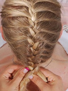 Παίρνετε τούφες μαλλιών από δεξιά και αριστερά μέχρι να πλέξετε όλα τα μαλλιά στην κοτσίδα.