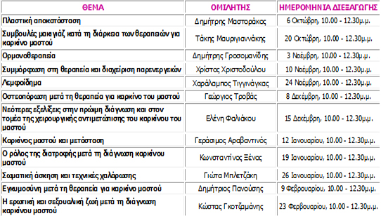 Φέτος, για 1η χρονιά, προστέθηκαν δύο καινούργια σεμινάρια με θέμα «Συμμόρφωση στη Θεραπεία και Διαχείριση Παρενεργειών» και «Η Ερωτική και Σεξουαλική Ζωή μετά τη Διάγνωση Καρκίνου Μαστού».