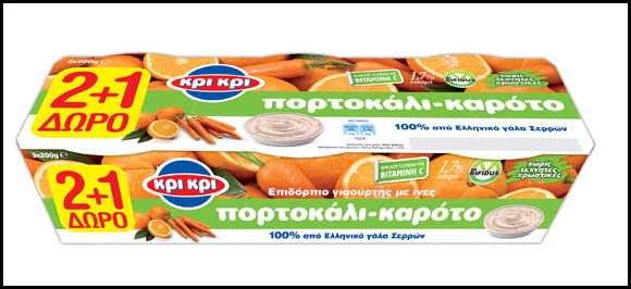 Το νέο επιδόρπιο γιαουρτιού ΚΡΙ ΚΡΙ πορτοκάλι & καρότο υπογραμμίζει τη διαχρονική συνέπεια της εταιρείας απέναντι στους καταναλωτές της δημιουργώντας και προσφέροντας προϊόντα που αντανακλούν τη γνησιότητα και την αυθεντικότητα χωρίς να παρεκκλίνει από τις αρχές της για αληθινή γεύση και αγνή απόλαυση! Θα το βρείτε στα ψυγεία των σούπερ-μάρκετ με προσφορά στις τρεις συσκευασίες τη μία δώρο.