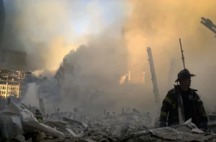 Λίγο μετά, ο Βόρειος Πύργος κατέρρευσε γύρω τους, αλλά η γυναίκα και οι πυροσβέστες σώθηκαν.