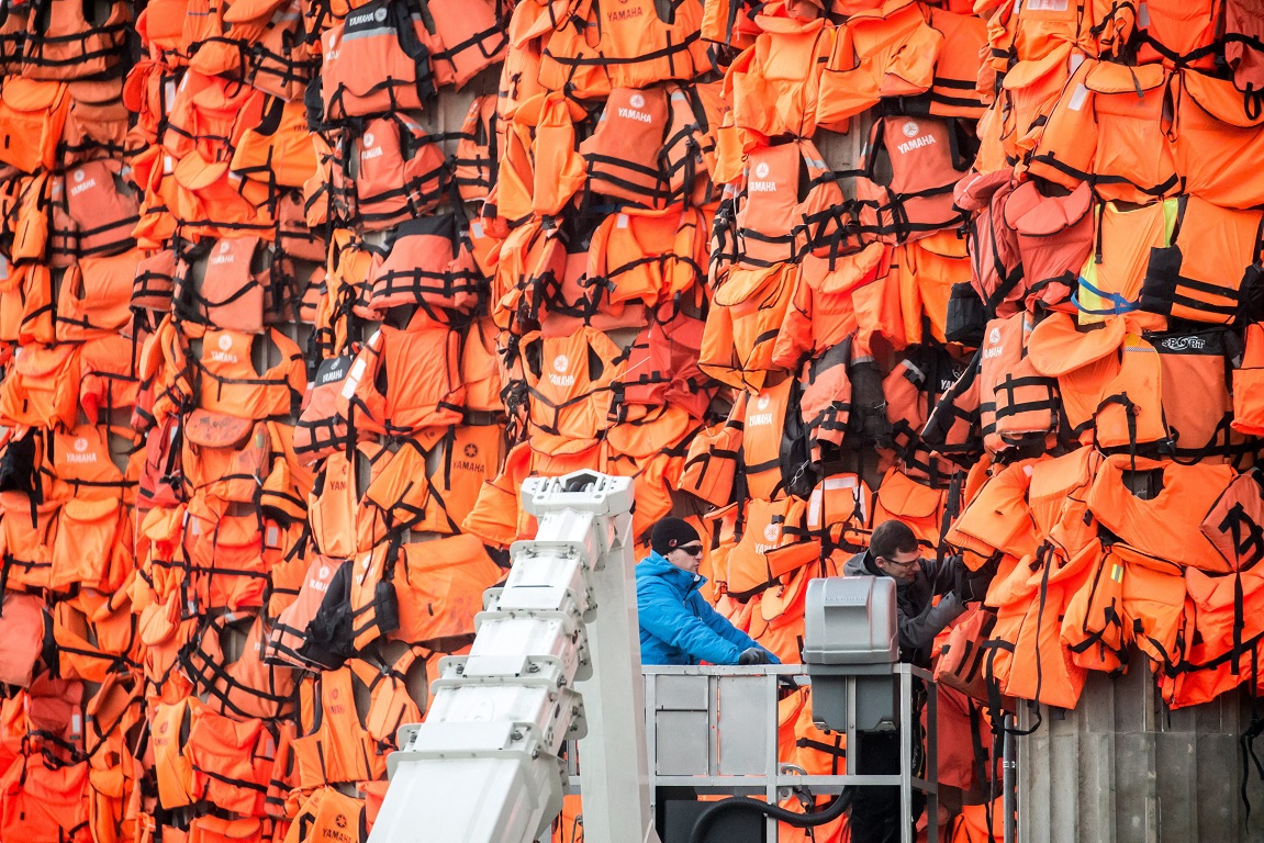 Συνολικά χρησιμοποιήθηκαν 14.000 σωσίβια και σωστικά γιλέκα, τα οποία συγκεντρώθηκαν από τις ακτές της Λέσβου και αρχές Φεβρουαρίου δόθηκαν στον -παγκοσμίου φήμης- καλλιτέχνη κατόπιν εντολής του δημάρχου Λέσβου Σπύρου Γαληνού.