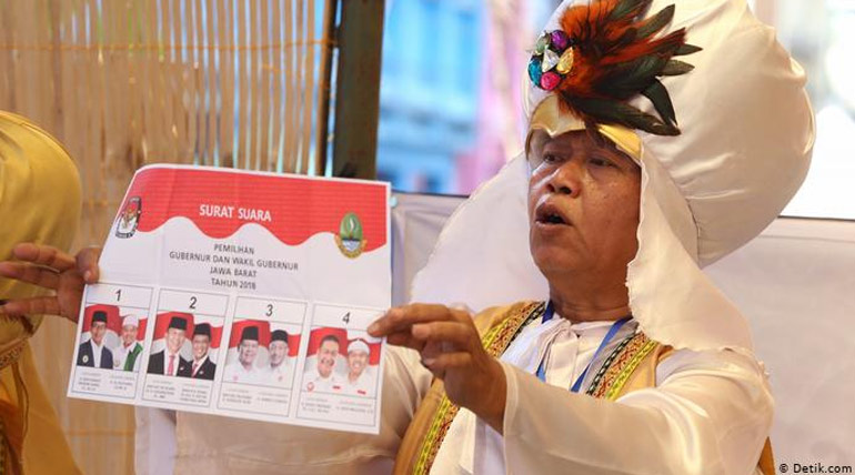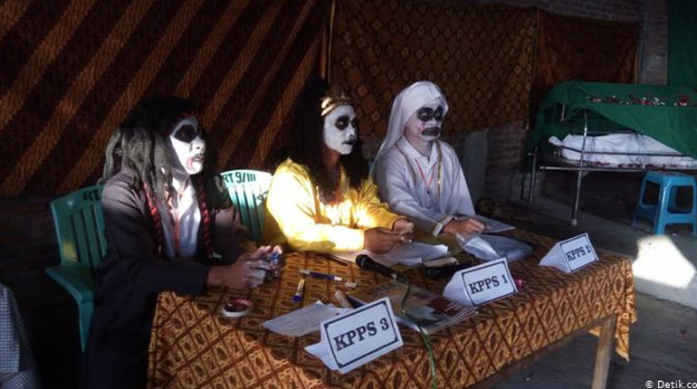 Τραγική… ειρωνία για το απίστευτο γεγονός: Οι συγκεκριμένοι εκλογικοί αντιπρόσωποι είναι ντυμένοι… ζόμπι, και διασφαλίζουν την ορθότητα της διαδικασίας, στο Semarang της Κεντικής Ιάβας..