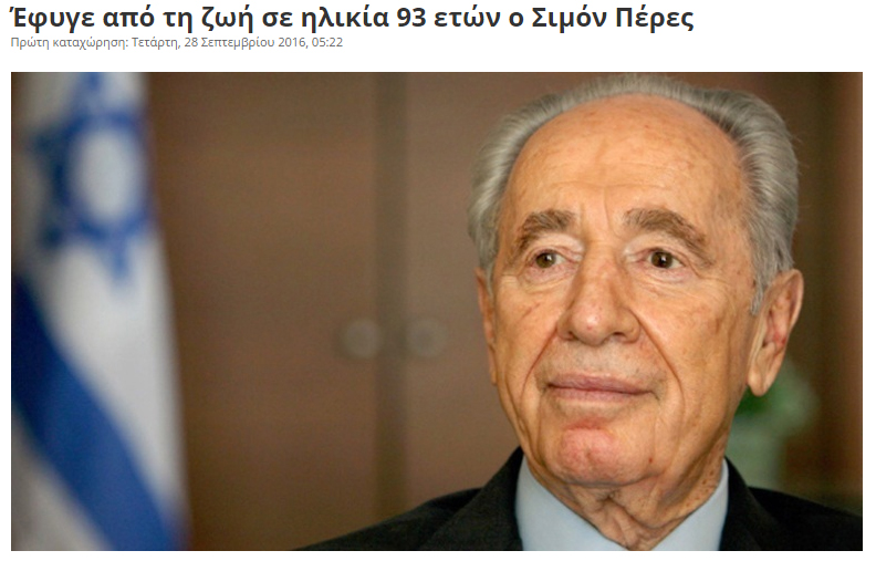Η αύρα του Σιμόν Πέρες ως τελευταίου επιζώντα των πατέρων του έθνους και η συνεχής παρουσία του επί δεκαετίες στην πολιτική ζωή τον επέβαλαν ως διακεκριμένη προσωπικότητα διεθνώςΟ Πέρες νοσηλευόταν σε κρίσιμη κατάσταση σε νοσοκομείο του Τελ Αβίβ, ύστερα από εγκεφαλικό επεισόδιο που υπέστη πριν από δυο εβδομάδες.Έφυγε σε ηλικία 93 ετών την Τετάρτη.