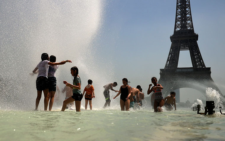 Από το Παρίσι έως το Μόναχο – κάτοικοι και οι τουρίστες αναζητούν δροσιά στα σιντριβάνια, τους ποταμούς και τις λίμνες ενώ οι γαλλικές και γερμανικές αρχές προειδοποιούν για διακοπές στο δίκτυο υδροδότησης.