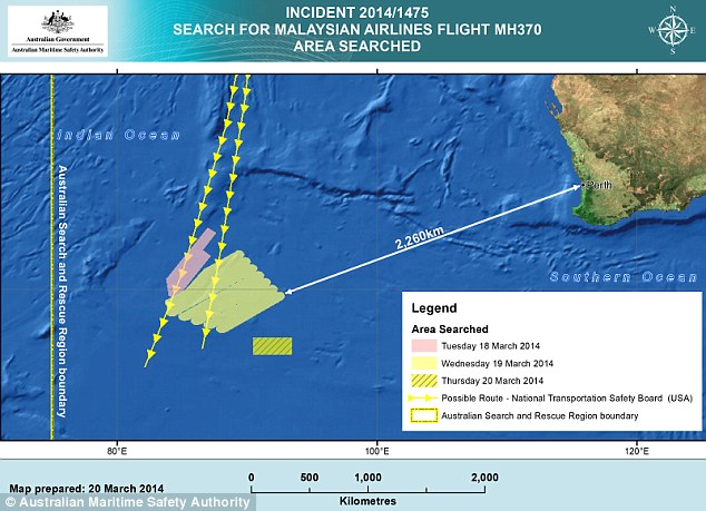 Μετά από συνεχείς αναζητήσεις εννέα ωρών, ο δημοσιογράφος του ABC ο οποίος είχε επιβιβαστεί στο αμερικανικό αεροσκάφος Ποσειδών, Ντέιβιντ Ράιτ, δήλωσε πως όταν το Ρ-8 όχι απλώς ερεύνησε το σημείο που έδωσαν ως το επικρατέστερο οι αυστραλιανές Αρχές, αλλά πλησίασε ακόμη και την Ανταρκτική. Τότε, έγινε σαφές ότι δεν θα έβρισκαν σήμερα τα αντικείμενα. Και το αμερικανικό αεροσκάφος της Πολεμικής Αεροπορίας των ΗΠΑ σταμάτησε για σήμερα τις έρευνες.