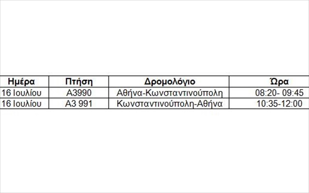 Λόγω της κατάστασης που επικρατεί στην Τουρκία και σύμφωνα με ενημέρωση ότι το αεροδρόμιο Ατατούρκ της Κωνσταντινούπολης είναι κλειστό, η AEGEAN...