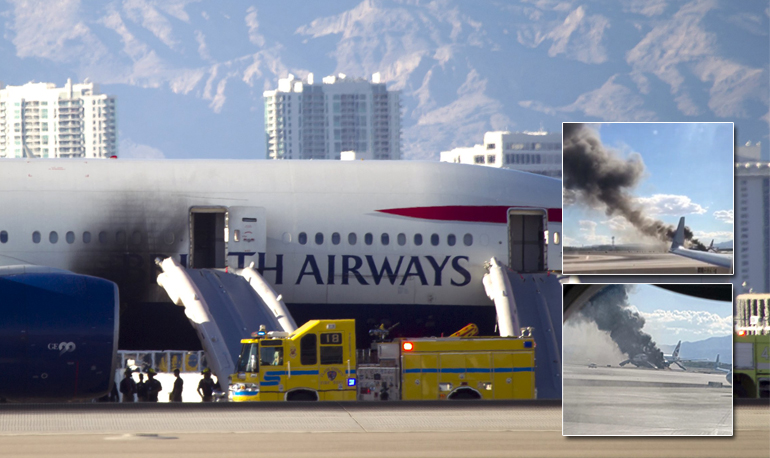 Συναγερμός σήμανε το μεσημέρι της Τρίτης (τοπική ώρα, τα ξημερώματα της Τετάρτης ώρα Ελλάδας) στο αεροδρόμιο McCarran του Las Vegas, όταν αεροπλάνο της British Airways τυλίχτηκε στις φλόγες κάτω από αδιευκρίνιστες συνθήκες λίγο πριν από την απογείωση.