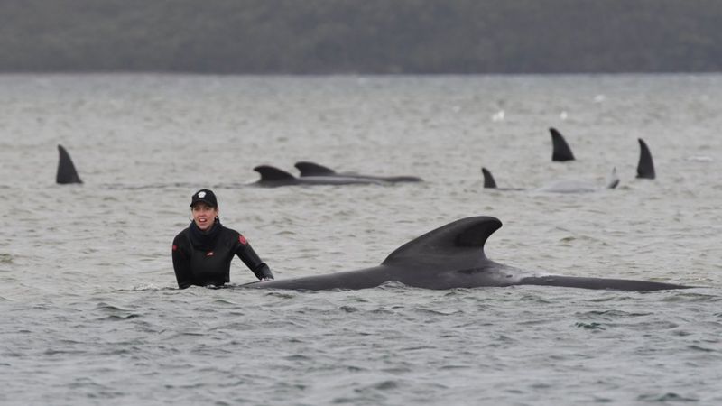 Τα ζώα εντοπίστηκαν να έχουν εξοκείλει τη Δευτέρα και πλέον θαλάσσιοι βιολόγοι πασχίζουν να σώσουν τις υπόλοιπες φάλαινες-πιλότους, σε μια δύσκολη επιχείρηση, η οποία είναι πιθανό να διαρκέσει ημέρες.