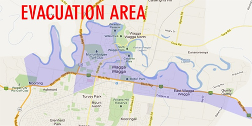 Οι έντονες βροχοπτώσεις το προηγούμενο χρονικό διάστημα προκάλεσαν το «φούσκωμα» του ποταμού Μουρουμπίντζι κοντά στην πόλη Γουάγκα Γουάγκα, με το ύψος των νερών να πλησιάζει τα 11 μέτρα και τις τοπικές Αρχές να δίνουν εντολή για την άμεση εκκένωση της πόλης.