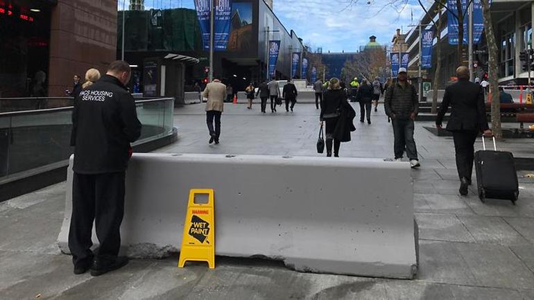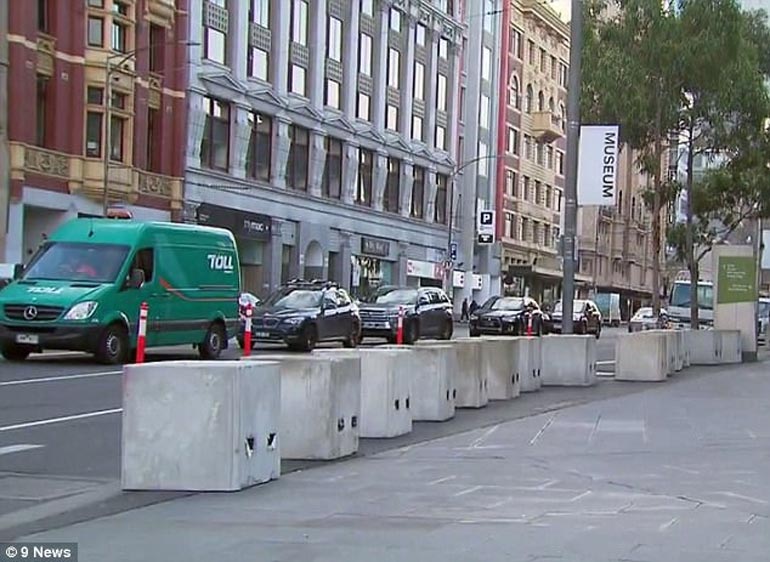Περίπου 140 τσιμεντένια κολωνάκια τοποθετήθηκαν σε οκτώ πεζοδρόμους γύρω από το κέντρο της Μελβούρνης, της δεύτερης μεγαλύτερης πόλης της Αυστραλίας, με στόχο τη μείωση του κινδύνου τρομοκρατικών ενεργειών, μετέδωσε το δίκτυο Australian Broadcasting Corporation.