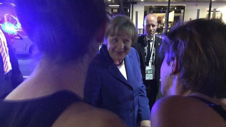 Η Μέρκελ τους πλησίασε, αντάλλαξε χειραψία με αρκετούς και φωτογραφήθηκε μαζί τους. «Καλώς ορίσατε στην Αυστραλία», της είπε μια Γερμανίδα που βρισκόταν εκεί.